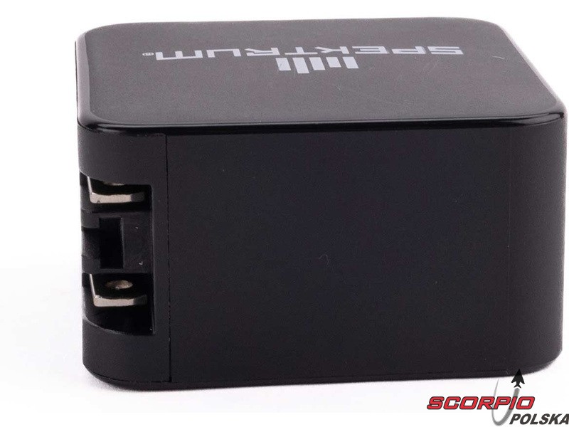 Ładowarka Spektrum Smart S100 z adapterem Spektrum GaN 65W USB-C. Kompletne, niedrogie rozwiązanie do ładowania akumulatorów z możliwością szybkiego ładowania akumulatorów Smart na zintegrowanym porcie wyjściowym IC3® lub IC5®. Ładuje dowolne akumulatory 1S-4S LiPo, LiIon, LiHV, LiFe i 1C - 12C Smart NiMH. Sterowanie trzema przyciskami, ustawienia prądu 1A, 2A, 3A i 6A. Wskaźnik LED stanu ładowania 20%, 40%, 60%, 80% i 100%. Dzięki zastosowaniu tranzystorów z azotku galu w zasilaczu USB-C zapewniona jest wysoka wydajność.