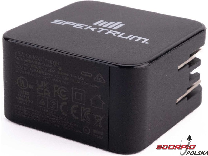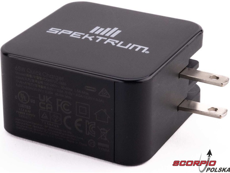Ładowarka USB-C Spektrum Smart S100 z adapterem USB-C Spektrum GaN 65W. Kompletne, niedrogie rozwiązanie do ładowania 1-4 ogniw LiPo, LiIon, LiHV, LiFe i 1-12 ogniw Smart NiMH. Prąd ładowania do 6 A.