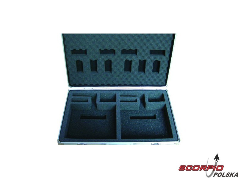 Walizka na dwa nadajniki lotnicze lub na nadajnik z akcesoriami. Przycięte elementy wypełnienia. Wymiary wewnętrzne 425x275x100mm, zewnętrzne 440x285x120mm.
