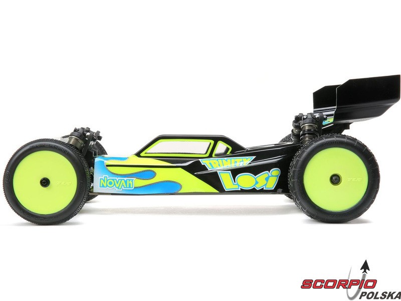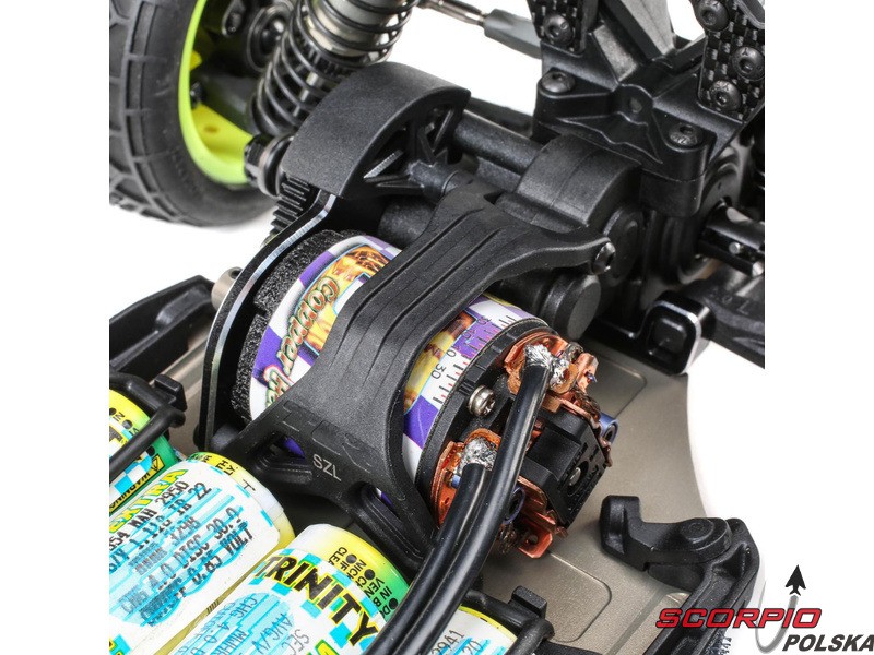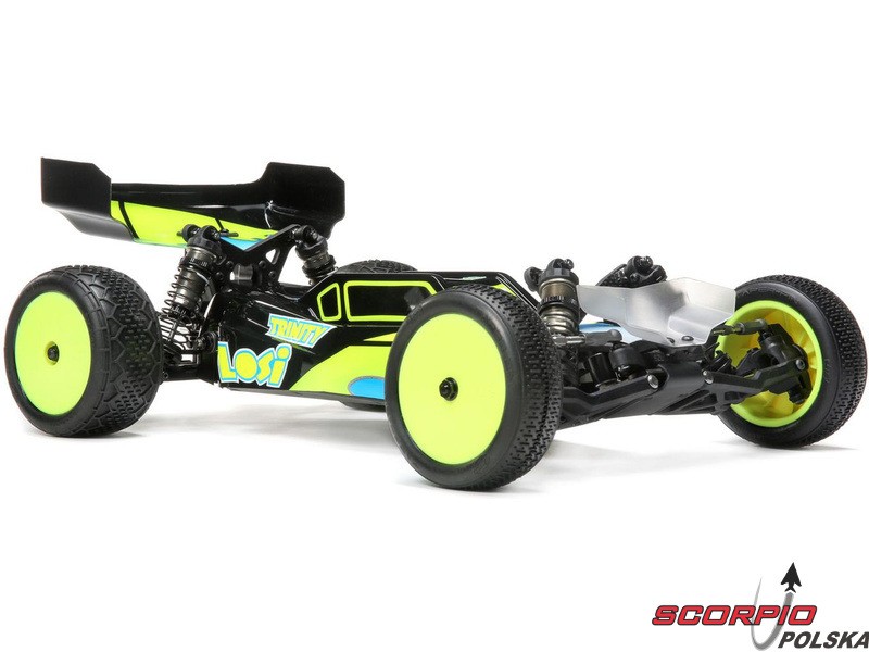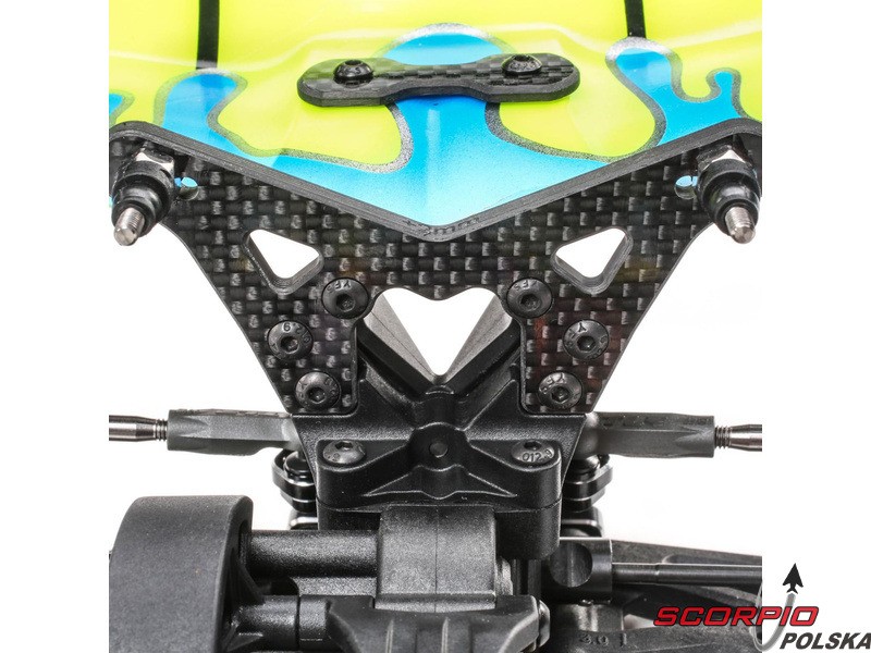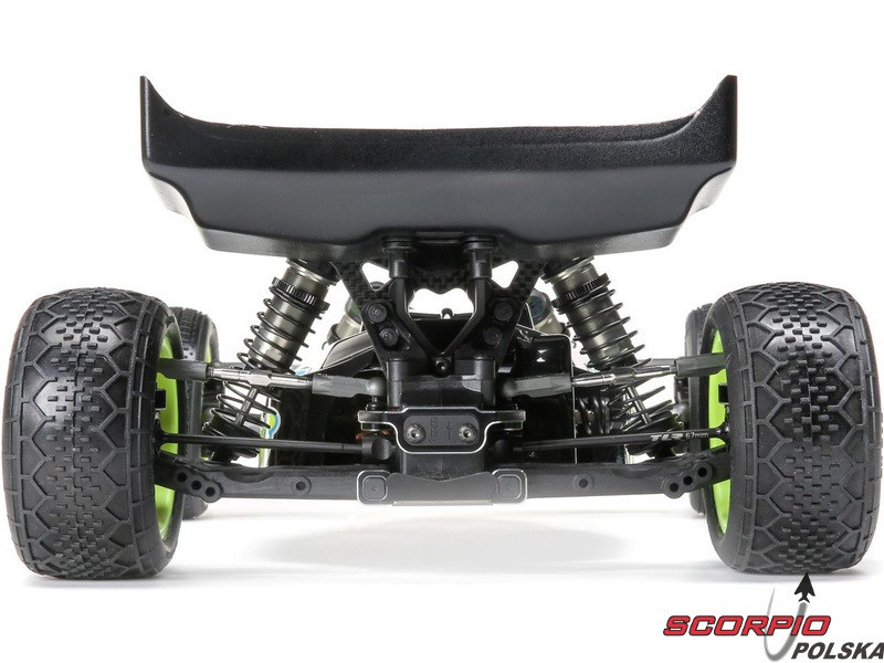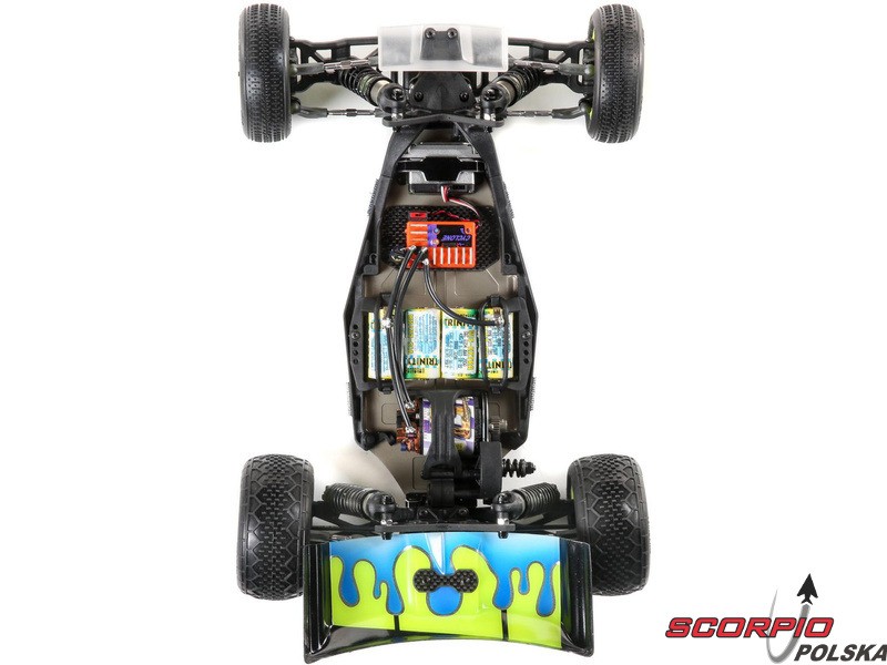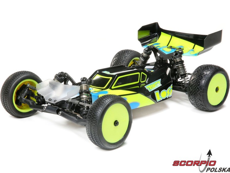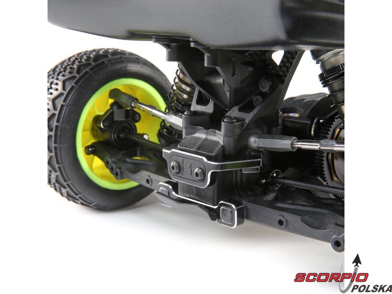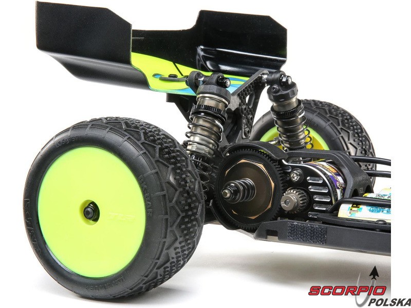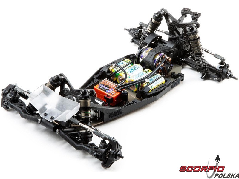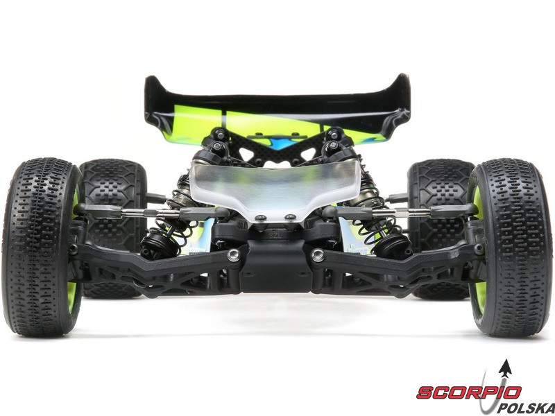 TLR 22 5.0 1:10 2WD DC ELITE Race Kit jest jednym z najlepszych zestawów RC na świecie. Wysoka wydajność i trwałość, aluminiowe części w tym podwozie, opcje regulacji podwozia i części tuningowe w zestawie. Duże aluminiowe olejowe regulowane amortyzatory, kompletne wyposażenie w łożyska kulkowe, niewielka masa i wiele innych ulepszeń sprawiają, że poziom 2WD electro buggy znów idzie do przodu. Buggy został również zoptymalizowany pod kątem dywanów i sztucznej trawy, więc przedni spoiler (w zestawie) może być użyty dla zwiększenia siły docisku przedniej osi i bardziej efektywnego sterowania.