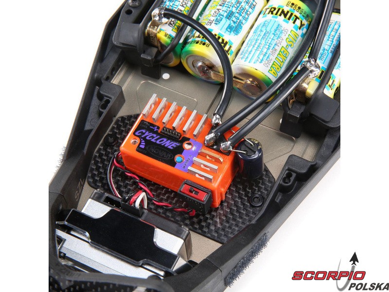 Podczas wyścigów silniki są obciążone do granic możliwości, a ponieważ tak bardzo się nagrzewają, potrzebny jest wentylator, aby utrzymać niską temperaturę silnika. W zestawie znajduje się więc uchwyt umożliwiający łatwy i pewny montaż wentylatora (wentylator nie wchodzi w skład zestawu).