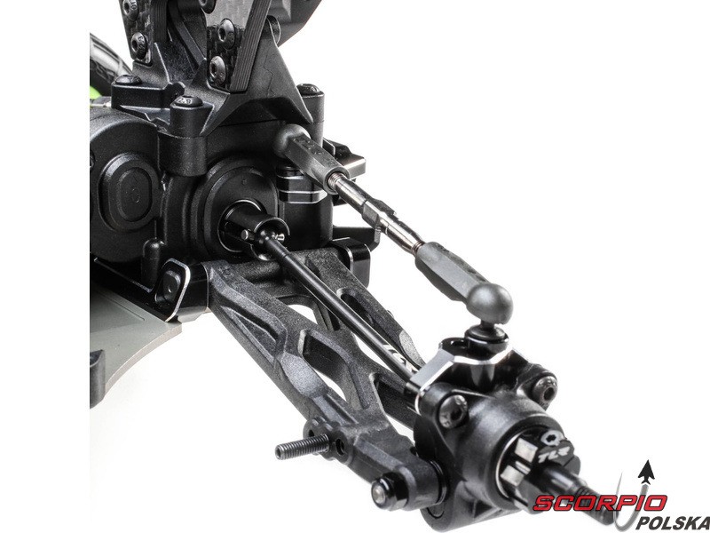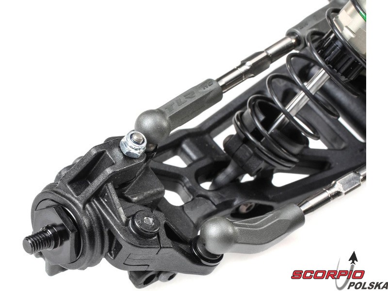 22 5.0 DC ELITE oferuje najlepiej regulowaną tylną oś, jaką kiedykolwiek wyprodukował TLR. Posiada wewnętrzne czopy tylne, regulację rozstawu kół, najwyższej klasy tylne drążki kierownicze z regulacją wysokości (VHA), które pozwalają na większe możliwości regulacji wysokości osi.