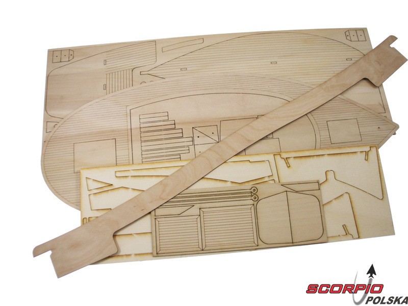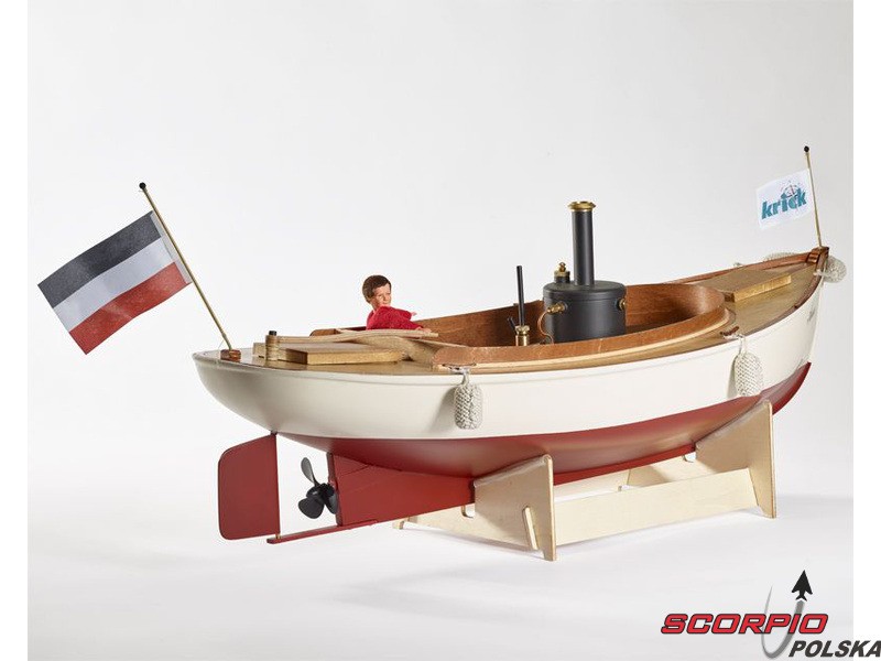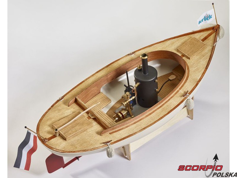 Zestaw zawiera części drewniane, kadłub ABS, silnik parowy Krick V2 z podkładką izolacyjną, śrubę okrętową, akcesoria montażowe, plany w skali 1:1, podręcznik DE, EN, FR.