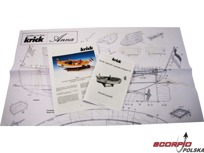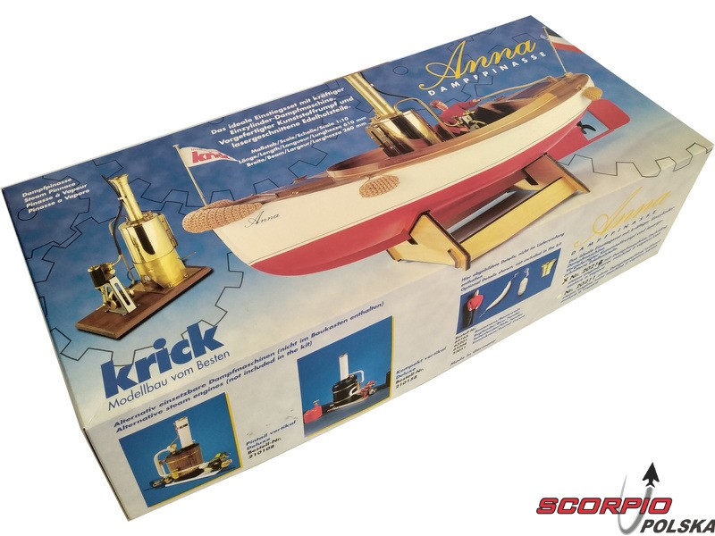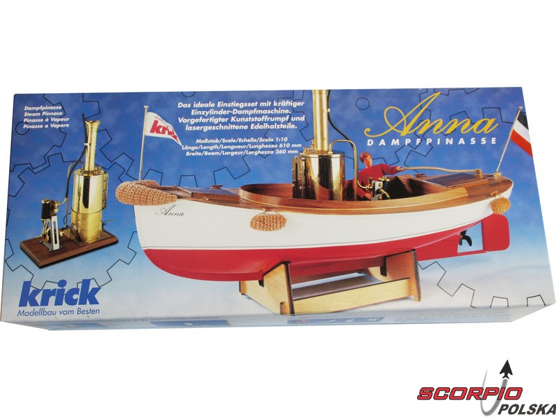 Zestaw modelu łodzi na napęd parowy Anna w skali 1:10. Pierwowzór był używany do transportu ludzi i towarów. Anna jest idealna jako wstęp do świata pary. Konstrukcja składa się z elementów drewnianych wycinanych laserem oraz gotowy kadłub ABS. Budowa nie wymaga żadnego specjalnego doświadczenia. Zestaw dostarczany jest wraz z kotłem parowym V2.